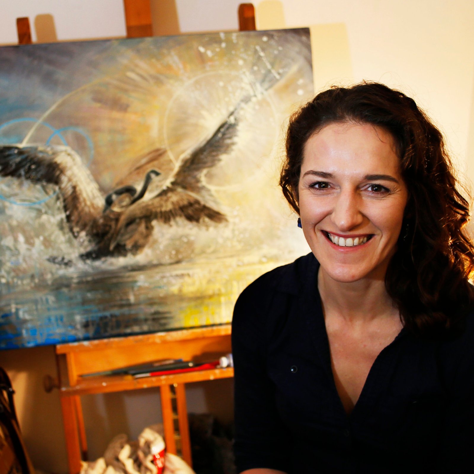 “The Arctic is full of stunning phenomena, from ice flowers, sled dogs, wild animals and the northern lights. I try to capture a moment of live energy on the canvas, the beauty of the experience and the tale it’s telling.”