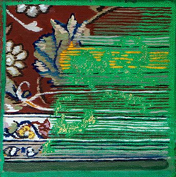 The patterns, warm colours and textures are so delicious, with worn areas and handmade mistakes which all added to their authenticity. I wanted to capture all of this in this piece, as well as the wealth of Iran’s cultural history, with the colours of the national flag and traditional patterns.”